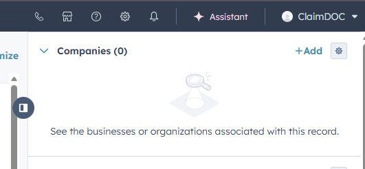 3. When you select a contact, the page will display all information. On the upper right-hand side, there is a Companies (0) dropdown with +Add next to it, select this option.