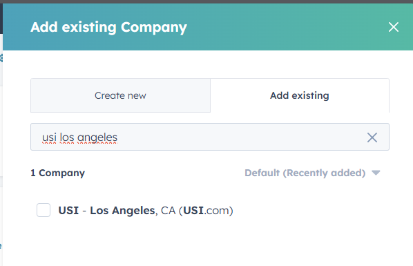 4. From here, you should type in the search bar for the company and location that the contact belongs to. For instance, If John Doe works at USI in Los Angeles, CA, type "USI Los Angeles" and it will appear.