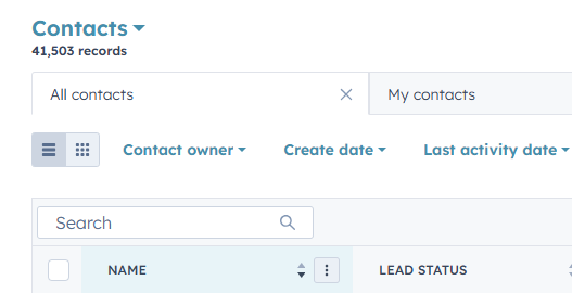 7. This view is now saved and you can access it at anytime by going to CRM > Contacts > All Views in the top righthand corner