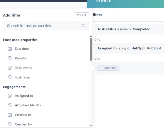 4. After selecting Edit, and then + Add filter you will see a list of properties that you can filter by. This should help you narrow down your task list to prioritize.