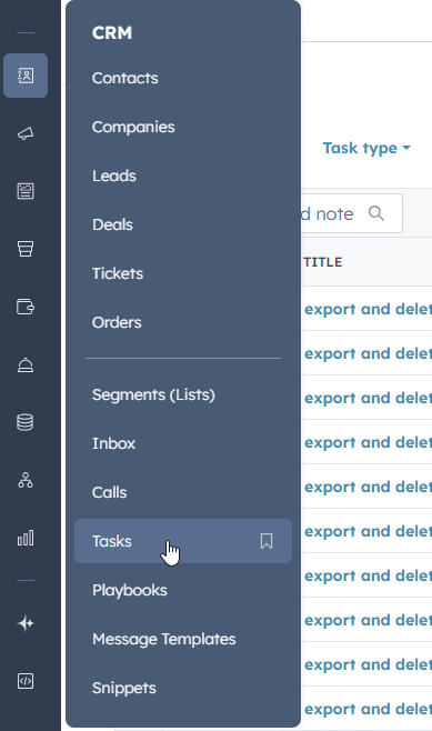1. Navigate to CRM > Tasks on the lefthand side. It will automatically show any and all tasks that are assigned to you.