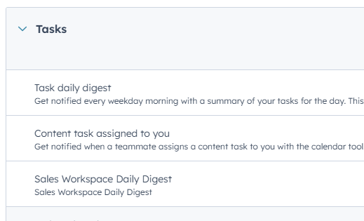 The digest will be prepared by HubSpot at 6AM and sent to your email inbox at 8AM on weekdays, based on your HubSpot account's default timezone. Any tasks created between 6AM and 8AM will not be included in that day's digest.